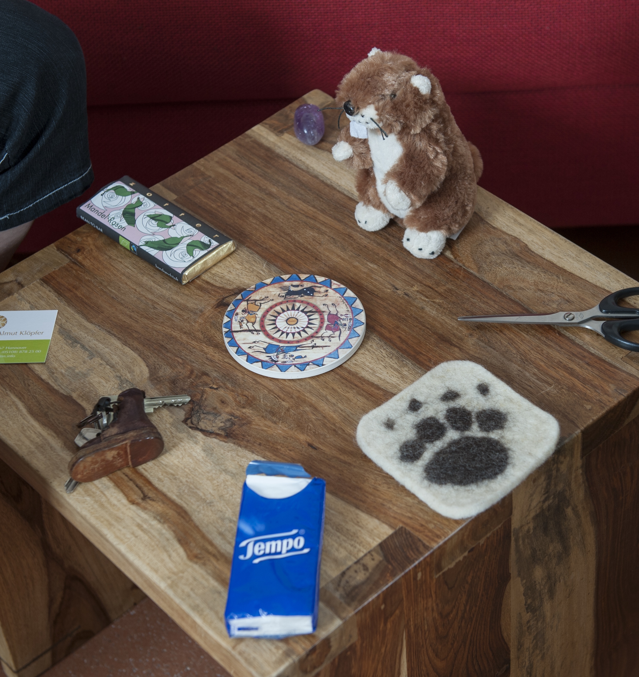 Wenn ich Klienten in einer Einzelsitzung dabei anleite, ein Medizinrad zu legen, kann jeder beliebige Gegenstand symbolhaft Auskunft geben über den momentanen Zustand eines Persönlichkeitsanteils.